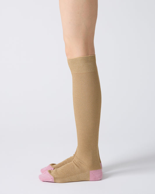 Babaco Gold Lurex Fine Ribbed Knee High Socks Gold